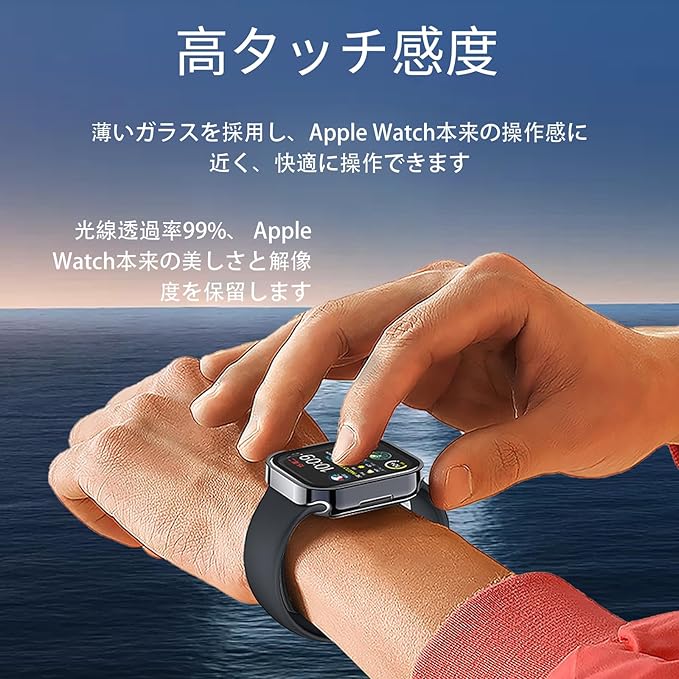 【全面保護カバー】高透明度の日本製ガラスと約1.3mmの薄さ、わずか2.13gの軽量なPC枠を採用。これにより、外部の衝撃から大切なApple Watchを守ります。硬度9Hの強靭な液晶部保護フィルムも備えています。さらに、透明度の高い液晶ガラス素材を使用しており、本来の明るくカラフルな画質を保ちます。