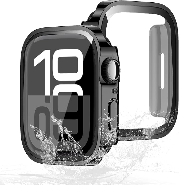 BUITFOU Apple Watch カバー Series 9/8/7 45mm 対応 アップルウォッチ用 ケース 防水 一体型 新デザイン 3D直角エッジ Apple Watch ケース対応 全面保護 超薄型 装着簡単 耐衝撃 高透過率 指紋防止 傷防止(45mm,光沢のブラック) a
