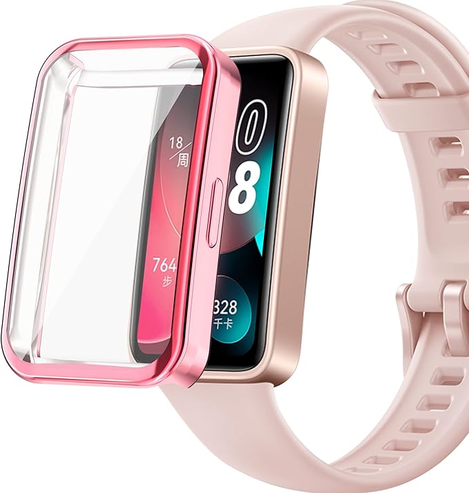 For HUAWEI Band 10/9/8 ケース HUAWEI Band 10/HUAWEI Band 9/HUAWEI Band 8 10時計保護ケース 【Kibnco】 メッキ仕上げ TPU ソフト 超軽量 耐衝撃 全面傷防止 カバー カバー (ピンク) a