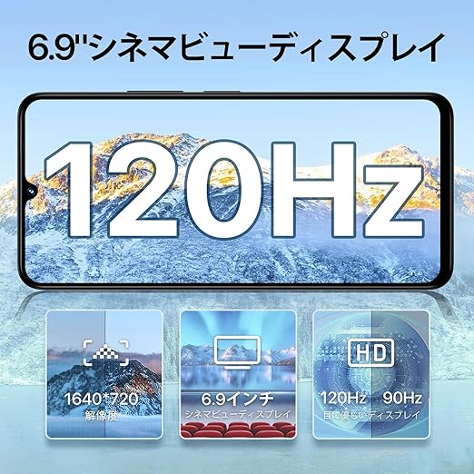 UMIDIGI スマホ SIMフリー 120Hz スマートフォン G100A 8GB RAM+128GB ROM+1TB TF拡張可能 6.9"HD+大画面 8コアCPU T615 BT5.2 アンドロイド SmartPhone 6000mAh FMラジオ 顔/指紋認証 携帯電話 4G-LTE通話/OTG/技適認証済/Google Pay対応 Android 14 日本語ガイド書 ロックブラック a