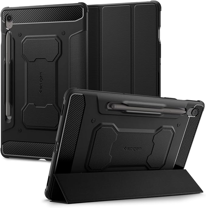 Spigen Galaxy Tab S10 FE ケース (2025年モデル) Galaxy Tab S9 ケース (2023年モデル) 保護カバー 衝撃吸収 耐衝撃 スタンド 落下防止 ラギッド・アーマー・プロ ACS09380 (ブラック) a
