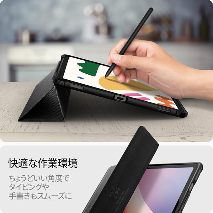 【便利なスタンド機能】 三つ折りタイプのスタンド機能付きで、Galaxy Tab S10 FEを好きな角度に調整して固定できます。タイピングや動画視聴など、用途に合わせて快適