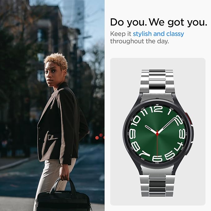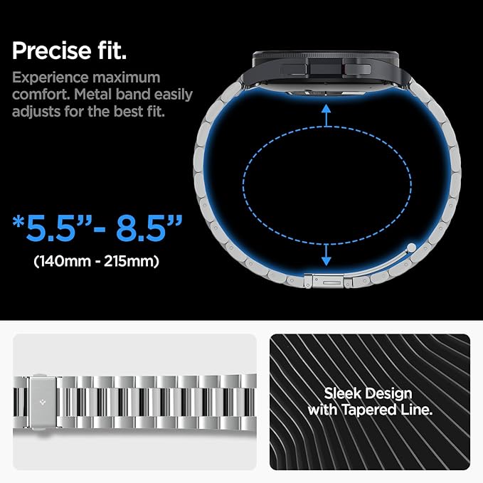Spigen Galaxy Watch 6 Classic 47mm バンド ステンレス製 調整可能 調整器具付き 交換ベルト チェーン メタル 3連 ベルト おしゃれ モダン・フィット AMP06489 (シルバー) a