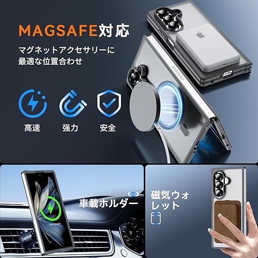 【Galaxy z fold 7専用・全面的保護設計】環境に優しい耐久性のある素材を採用したこの全包囲型ソフトGalaxy z fold7 ケース magsafeは、z fold 7専用設計で、18FT(約5.5m)の耐衝撃テストに合格。四隅にエアクッションと強化フロントカバーの組み合わせ、衝撃を約90%吸収し、不意の落下からもしっかり保護。また、0.001ミリメートルの精密な型開きと柔軟な素材で、取り付けや交換が簡単で、ほこりを防ぎます。