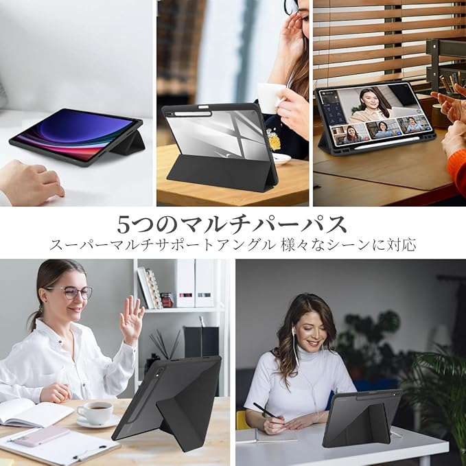 【5WAYスタンド機能】Yつ折りフロントカバーにより、視聴とタイピングに合わせた5通りのスタンド角度を調整できます。動画視聴、読書、チャット、タイピング、WEBなどの時にすごく助かりますよ。