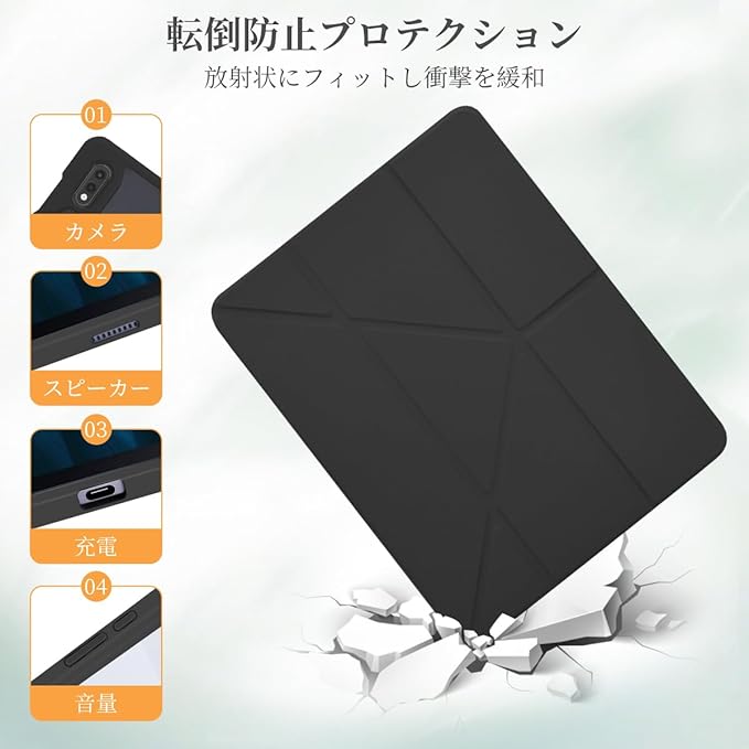 Galaxy Tab S9 Plus/S9+ ケース Tab S9 FE Plus/S9 FE+ ケース 2023 用 12.4インチ ケース レザー 背面 カバー 5WAY スタンド 横置&縦置 マグネット吸着式 付き自動スリープ機能 超スリム 軽量 衝撃保護 折りたたみ 角度調整可能 三角形の構造 ケース つ 折り畳み式 ケース(ブラック) a