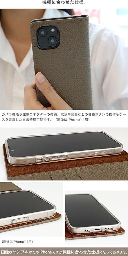 【素材】本体(外側)・カードポケット : シュリンクレザー(シュランケンカーフレザー)皮の銀面(製革工程で毛や表皮を除去した真皮の表面)を収縮(シュリンク加工)させ、本来の銀面模様を強調した革。 本体(内側) : シャムード(人工スエード) 内側ケース : PC(ポリカーボネート)またはシリコン ステッチにはドイツの手芸糸老舗メーカー「ギッターマン(G
