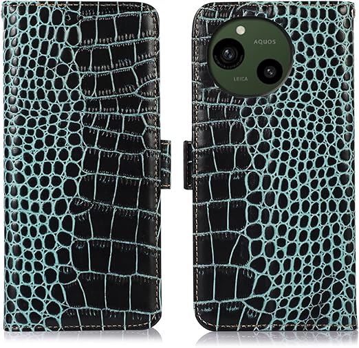 for AQUOS R10 ケース 手帳型 本革 ワニ柄 アクオスr10 SH-51F 牛革 財布型 鰐柄 クロコダイル柄 耐衝撃 [RFIDブロッキング] カード収納 マグネット式ボタン 横置きスタンド機能 便利 財布型携帯 スマホケース 水色 Rureu a