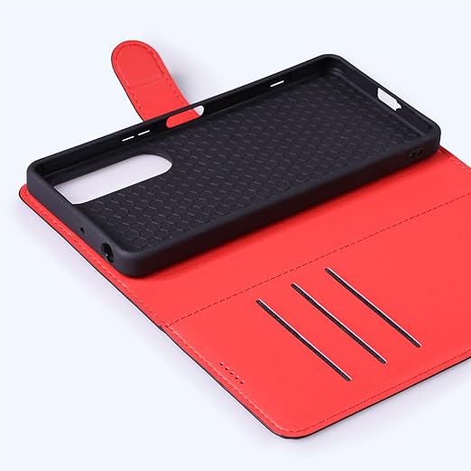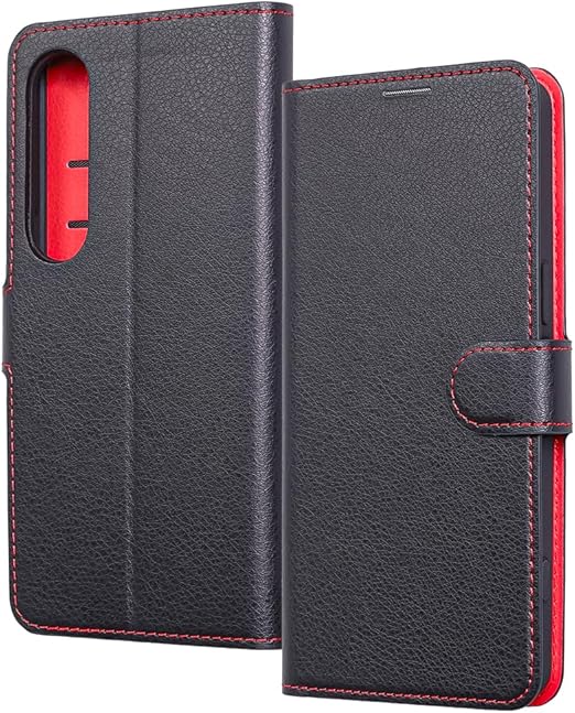 レイ・アウト Xperia 1 VII Like standard 耐衝撃 マグネットベルト シンプル 手帳型レザーケース/ブラック_レッド RT-RXP1M7ELC1/BR a