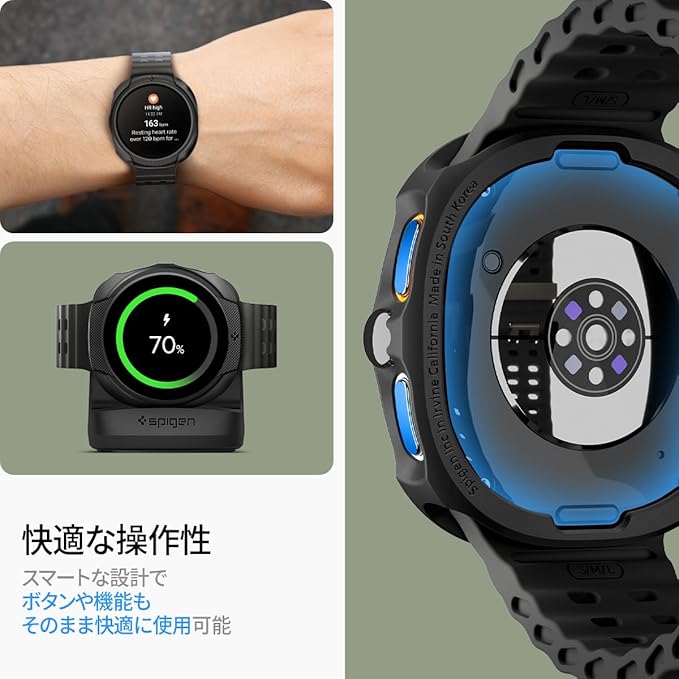 【画面を守る設計】ディスプレイ周囲を高く設計された構造で、ウォッチ画面を傷や衝撃からしっかり保護します。