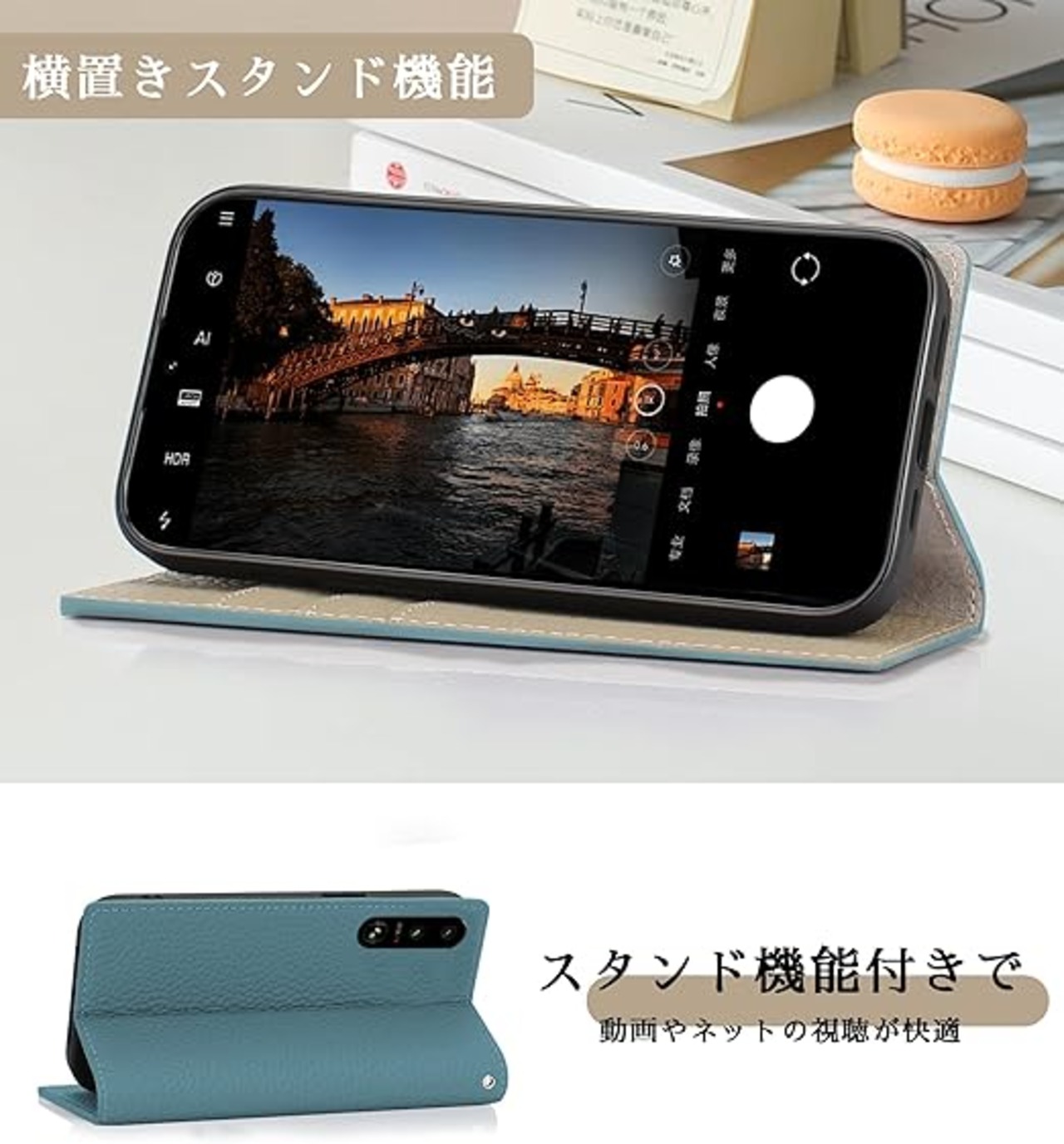 CLICSUN Xperia 1 ii 対応ケース SO-51A SOG01 対応 高級牛本革ケース 手帳型 エクスペリ1 iiカバー 本革 レザー カバー スタンド機能 ストラップ付き マグネット式 カードポケット ギフトボックス付き ブルー×グレー a