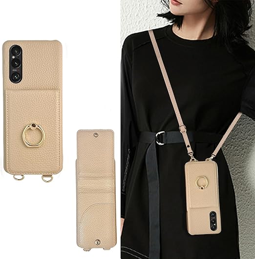 xperia 1 vi ケース ショルダー 可愛い エクスペリア1 vi ケース ショルダー 薄型 かわいい xperia1 vi ケース ショルダー ストラップ スマホケース 携帯ケース 背面カード収納 斜めかけ 肩掛け 首掛け 紐付き 韓国 軽量 ショルダーケース おしゃれ 2way 杏色 a
