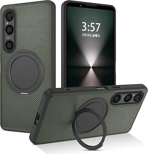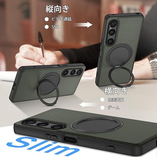 BENTOBEN Xperia 1 VI ケース SO-51E | SOG13 ケース MagSafe対応 360°回転スタンド 縦横両対応 カーボン風デザイン 耐衝撃 マグネット内蔵 車載スマホホルダー対応 ストラップホール付き エクスペリア1 VI スマホケース カバー グリーン a