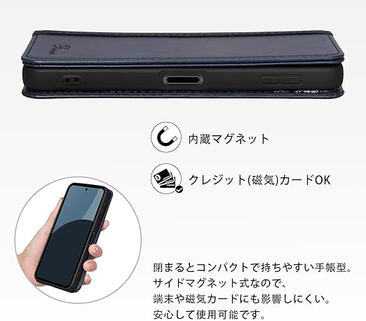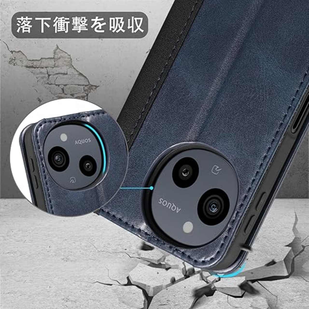 「AQUOS sense9 専用手帳型ケース」:カバーは高級なPUレザーを採用しており、放熱性や耐衝撃が良く、傷や埃を防ぐことができるsense9カバーです。インナーケースはソフトタイプなので、スマホの着脱が簡単ですし、角までしっかり保護できるshg14ケースです。
