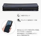 「手帳型ならではの機能が満載」:内側には三つのカード入れと一つのフリーポケットがつき、定期券やカードの収納に優れているsh-53e手帳型ケースです。横置きスタンド機能がつき、暇つぶしに楽々動画視聴や読書など楽しめます。