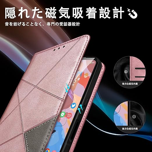 AQUOS Wish4 ケース 手帳型 SH-52E A402SH カード収納 財布型 カバー シャープ ウィッシュ4 耐衝撃 キックスタンド機能 スマホケース PU合皮 TPU素材 SH-M27 携帯カバー 薄型 軽量 ストラップホール付 ローズゴールド a