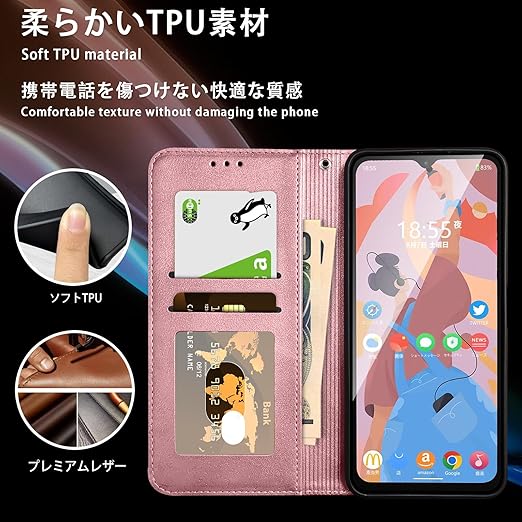 【適用機種】AQUOS Wish4 (SH-52E A402SH)専用ケース に対応なので。※購入前に対応機種をご確認よろしくお願い致します。外部のカバーは高級感が溢れるPU合皮を採用して、肌触りがよくて耐久性もよく、あらゆる方向からの衝撃、しっかりと本体を保護してくれます。TPU素材を採用、柔軟性が高く着脱が簡単で変形しにくく、ベタつかず適度な柔らかさで触り心地が良い。