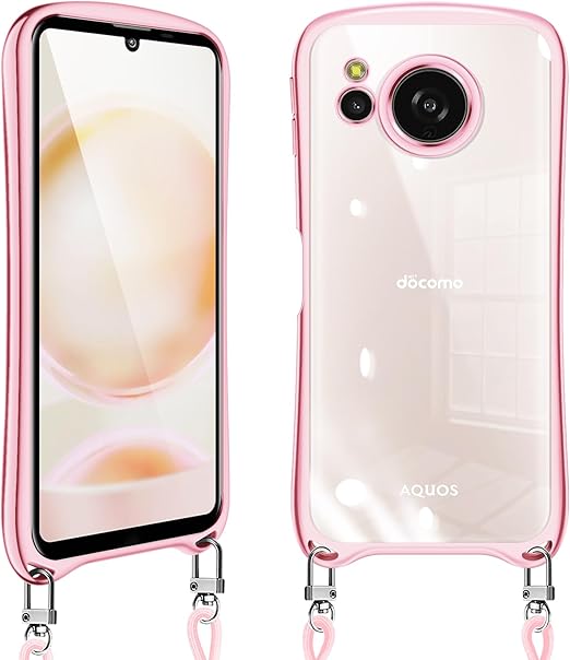 AQUOS Sense 8 ケース クリア ショルダー sense8 SH-54D SHG11 カバー スマホケース 耐衝撃 肩掛け 首掛け 斜めかけケース 可愛い かわいい 韓国 透明 TPU シリコン 長さ調整可能 取り外し可能(ローズゴールド) a