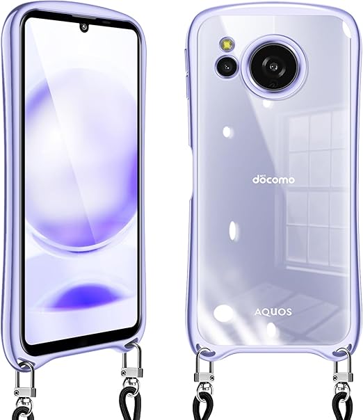 AQUOS Sense 8 ケース クリア ショルダー sense8 SH-54D SHG11 カバー スマホケース 耐衝撃 肩掛け 首掛け 斜めかけケース 可愛い かわいい 韓国 透明 TPU シリコン 長さ調整可能 取り外し可能(ライトパープル) a
