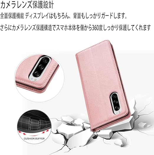Xperia 5 ケース 手帳型 高質PUレザー Xperia 5 カバー Sony SOV41 ケース ソニー エクスペリア5 耐衝撃 SO-01M カバー Case 皮革 内蔵マグネット開閉式 ベルトなし スマホケース おしゃれ カードポケット スタンド機能 便利 スプラット同梱 携帯ケース (ピンクゴールド) a