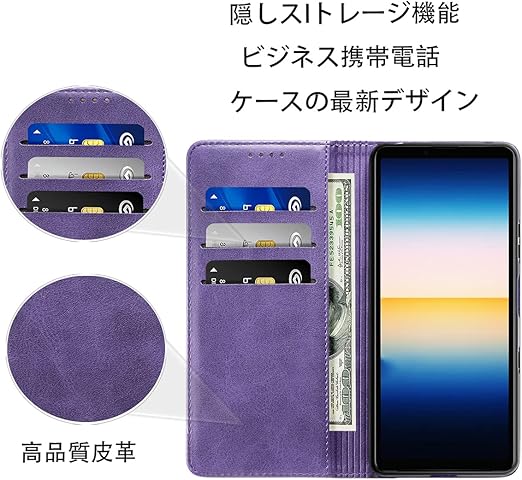 Xperia 10 III SOG04 ケース 手帳型 高質PUレザー ソニー Xperia 10 III カバー Sony SO-52B ケース エクスペリア10 III 耐衝撃 皮革 内蔵マグネット開閉式 ベルトなし スマホケース おしゃれ カードポケット スタンド機能 便利 スプラット同梱 携帯ケース (パープル) a