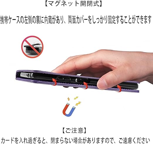 【多機能】:①[スタンド機能が付いて]:横向いて斜めに立てて、お好きな角度を調整できます。②[360度保護]:内蔵マグレット機能付きの手帳型カバーで、大切なディスプレイへのキズ、汚れ、衝撃も保護できます。③[マグネット開閉式]:携帯ケースの左側の裏に内蔵があり、両面カバ