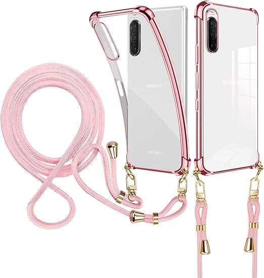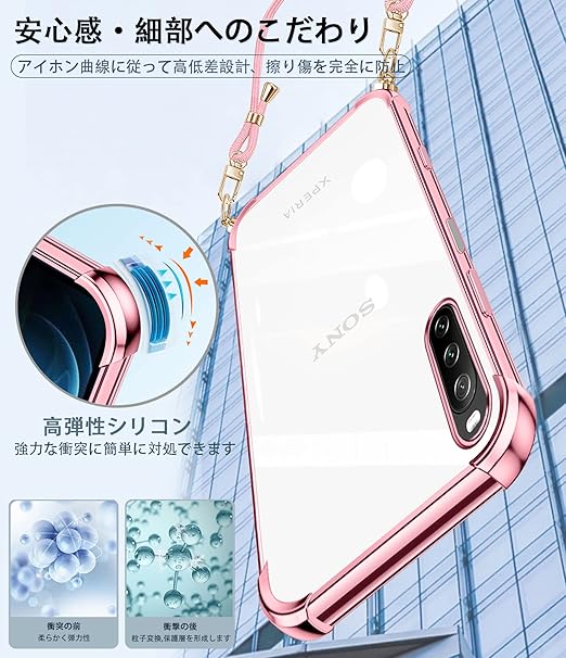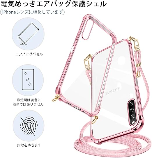 weiaoluo Xperia 10 III/Xperia 10 III lite ケース クリア SO-52B SOG04 ケース ショルダー 耐衝撃 Sony エクスペリア10III liteカバー 薄型 TPU 軽量 肩がけ 首掛け 紐付きバンパー カバー 透明 ストラップ着脱可 調節 Qi充電 ワイヤレス充電 傷防止 全面保護 落下防止 すり傷防止 カメラ保護(ローズゴールド) a