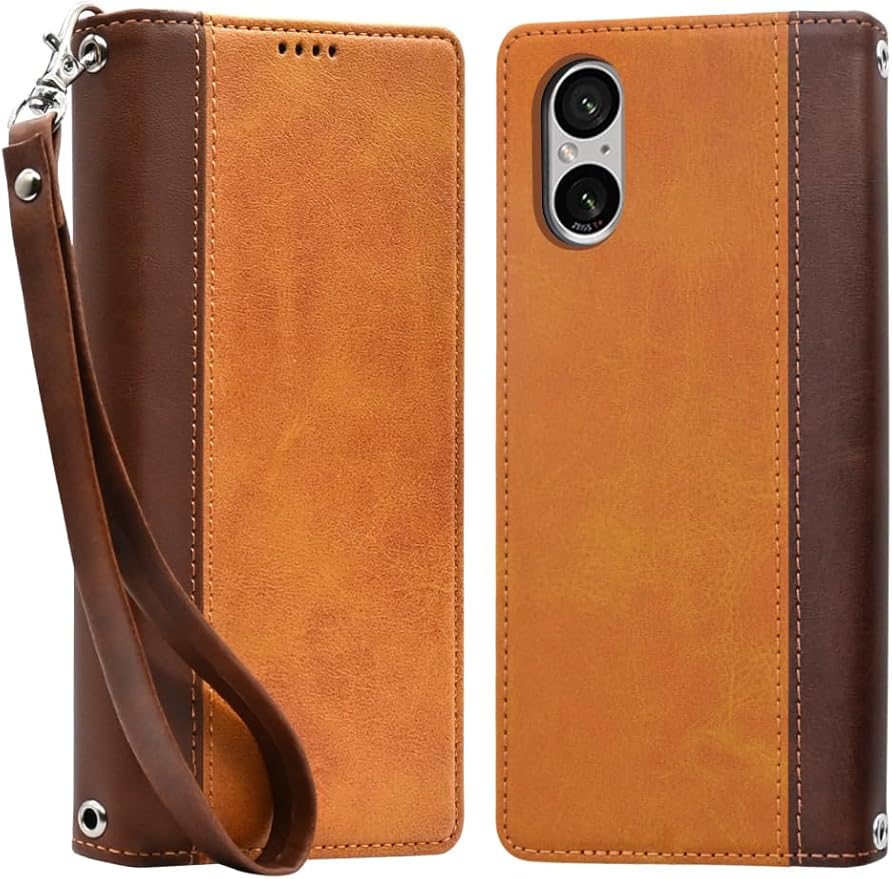 シズカウィル Xperia 5 v SO-53D SOG12 XQ-DE44 ケース カバー 手帳型 本革調 レザーケース イエローブラウン×ブラウン 1個入り a