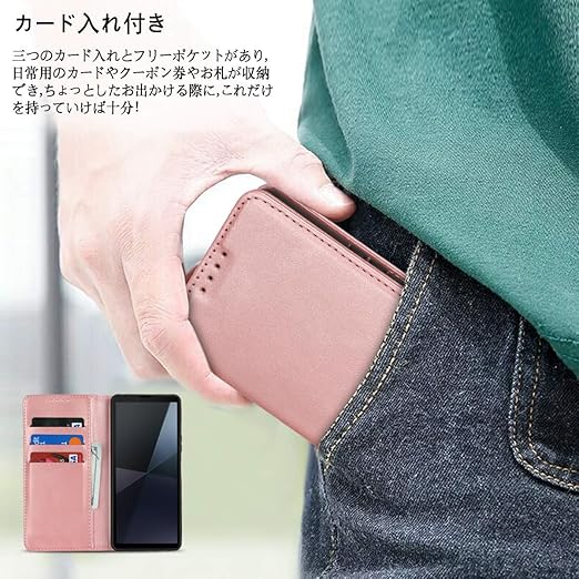 Xperia 10 VI ケース 手帳型 xperia10VI 手帳 カバー SOG14 au SO-52E docomo SIMフリー SoftBank A402SO 楽天モバイル 全対応 Xperia10 6 ソニー エクスぺリア10VI SO52E 携帯カバー 適用 case iCoverCase マグネット カードケース スマホケース スタンド 落ち着いた色 レトロ ピンク a
