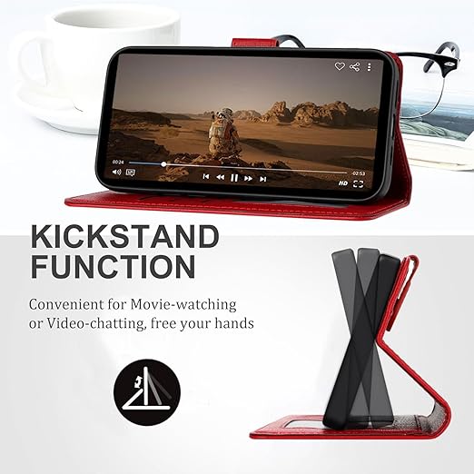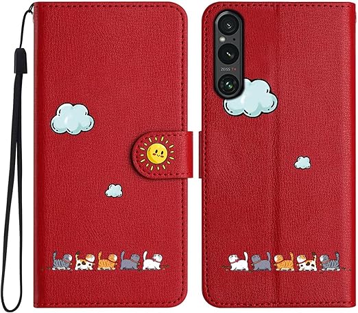 ALSDKEZI Sony Xperia 1 VII ケース 手帳型 可愛い 猫柄 Xperia 1 第7世代 携帯カバー 動物柄 純色シンプルデザイン スマホケース おしゃれ カード入れ 財布型 Xperia 1 VII 女性 人気 カバー カード収納 スタンド機能 内蔵マグネット式, 赤/Red a
