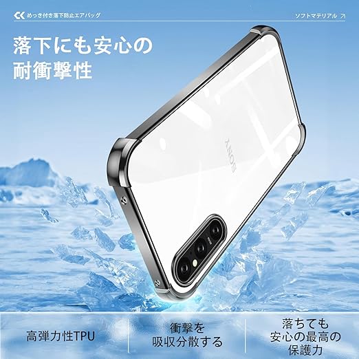 【驚きの透明度】透き通った高い透明度を誇り、また、Xperia 1vi本体とピッタリ密着して違和感がない一体感がすごく格好いいです。そして、ケースの内側に施された吸着に優れるマイクロドットは熱を効率的に放出できます。高品質TPU素材、ドイツバイエル製TP