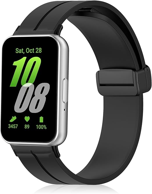 [RicYeel] 磁気付き シリコンバンド Samsung Galaxy Fit 3 対応 交換ベルト マグネット付き 装着簡単 柔らかい ストラップ 替えベルト Samsung Galaxy Fit 3 用 (ブラック) a