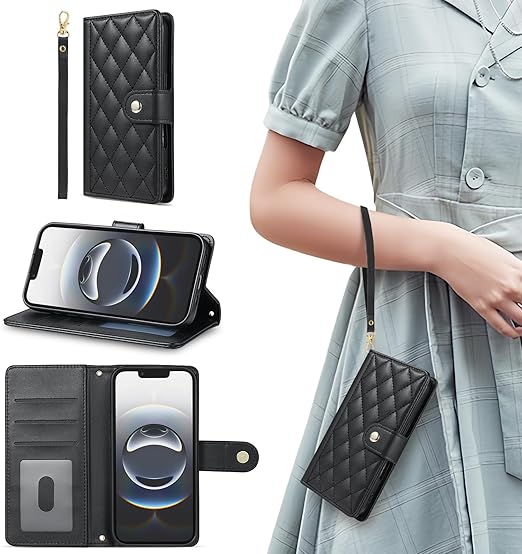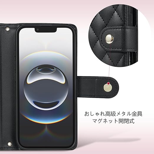 対応AQUOS R10/R9 通用 ケース 手帳型 【Vokpok】おしゃれ高級PUレザーとメタル金具マグネット開閉式 アクオス R10/R9 財布型 ケース カード収納機能 スタンド機能 耐衝撃AQUOS r9/r10 SH-51F/SH-51E/ A401SH/SH-M28 スマホケース キルティグレザー調おしゃれ小香風 人気上品 アクオス r9/r10 手帳型ケース,ブラック a