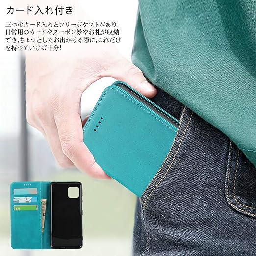 【機能性②】:内蔵マグネット機能搭載の手帳型ケースなので、留め具の邪魔無し、滑り防止の素材を採用され、とてもシンプルな感じで、しかも持ち易いて、使い勝手がよいのです。