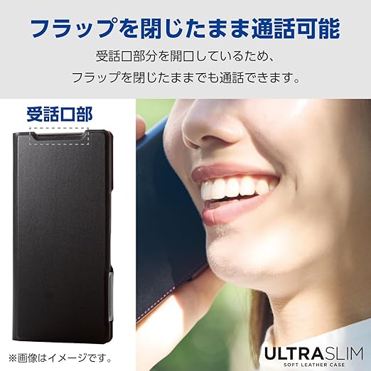 端末の薄さや軽さを損ねない、薄型・超軽量なウルトラスリムタイプのソフトレザーケース(手帳型)です。