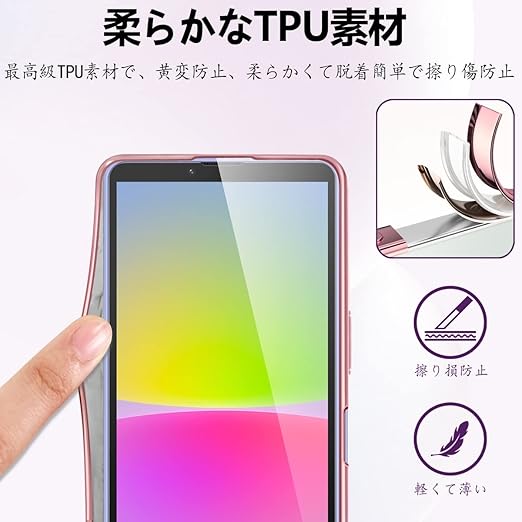 【TPU素材】柔らかいTPU素材で作らているので、手に持った際のフィット感が好評です。スマホ本体の着脱も簡単に行うことができます。また、汚れや傷などから本体を守ってくれます。