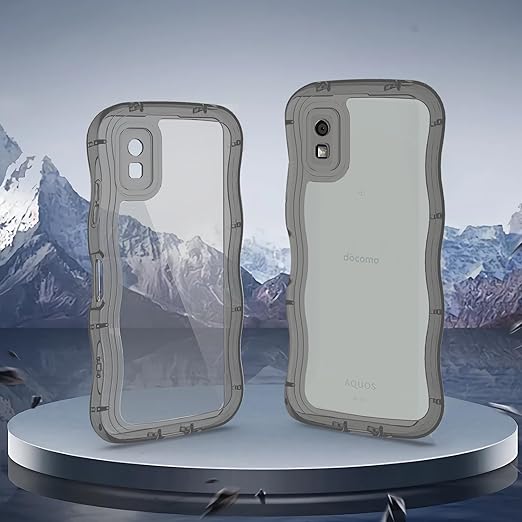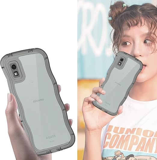 AQUOS wish3 ケース クリアブラック ウェーブ SH-53D TPU波状のバンパー 半透明 スマホケース かわいい うねうね アクオス ウィッシュ3 SH-53D ウェーブ デザイン 可愛い 韓国 女性用 薄型 人気 おしゃれ 耐衝撃 ストラップホール付き(ブラック) a