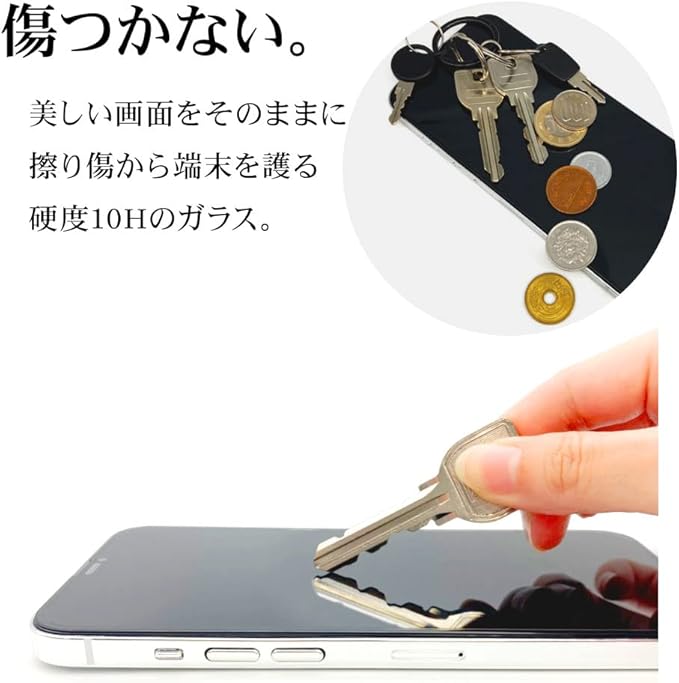 【最高硬度】最高硬度10Hの強靭なガラスで、美しい表面を保ちながら大切な端末をすり傷から護ります。