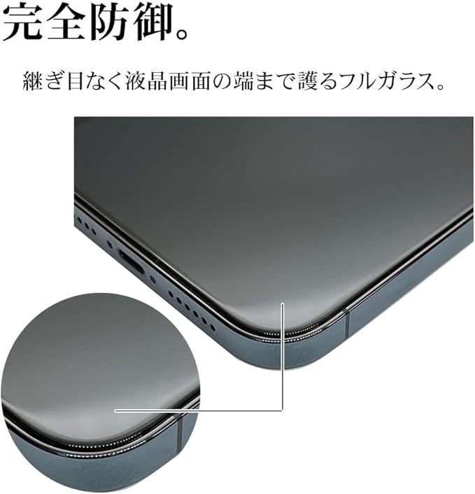 【継ぎ目のない一枚ガラス】ガラスの周りのシルクプリントのフレームが、シリコン層の断面に浮かび上がる光の筋をシャットアウト。継ぎ目なく隅々まで美しく液晶画面を護ります。
