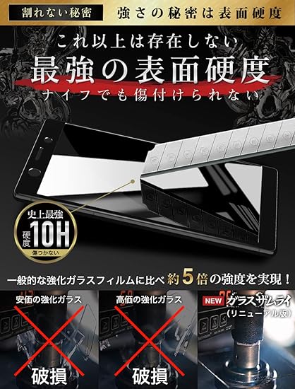 ガラスザムライ XperiaACE 用 ガラスフィルム SO-02L 用 全面保護 硬度 10H 強化ガラス 保護フィルム 米軍MIL規格 219-3d-bk a