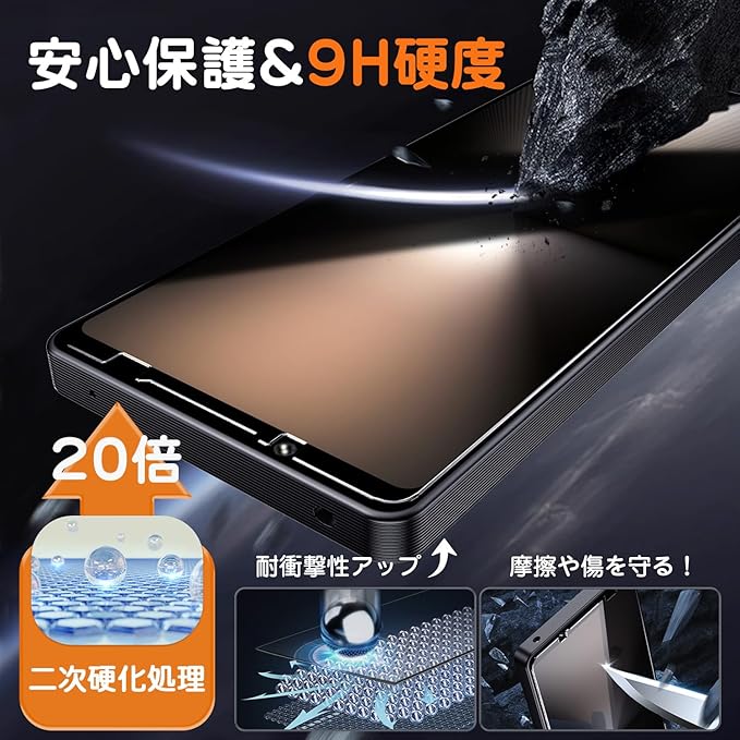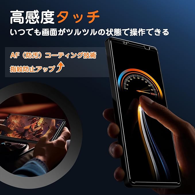 【二次硬化处理&9h硬度】Xperia 1 VI SO-51Eフィルムは日本製AGCのガラス材料を採用し、一般的な熱強化処理を行った後に、二次硬化処理を行っています。1000回以上のひっかき傷テストと落下テストに無傷と、落下に対する耐性が高い。每年にわたって、日本で累計10万枚販売し、画面の破損記録がゼロとなっています。