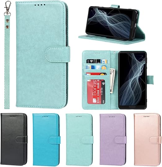 Eastwave AQUOS sense4 ケース AQUOS sense5G 手帳型 AQUOS Sense 4 Lite 財布型 Sense4 basic カバー ケース ストラップ付き PUレザー カード収納 横置きスタンド 機能 明るい色 内蔵マグネット?グリーン a