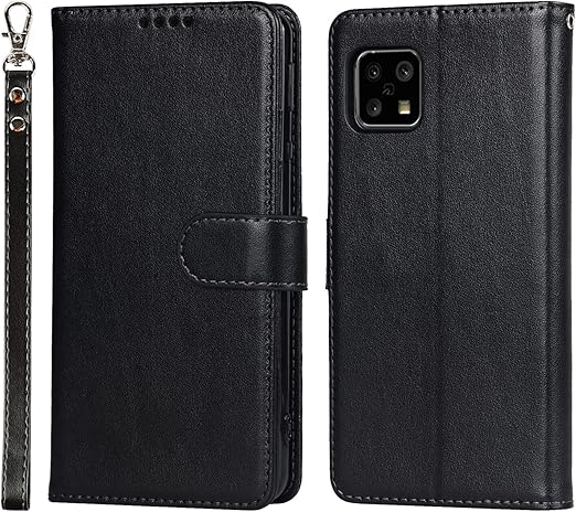 Eastwave AQUOS sense4 ケース AQUOS sense5G 手帳型 AQUOS Sense 4 Lite 財布型 Sense4 basic カバー ケース ストラップ付き PUレザー カード収納 横置きスタンド 機能 明るい色 内蔵マグネット?ブラック a