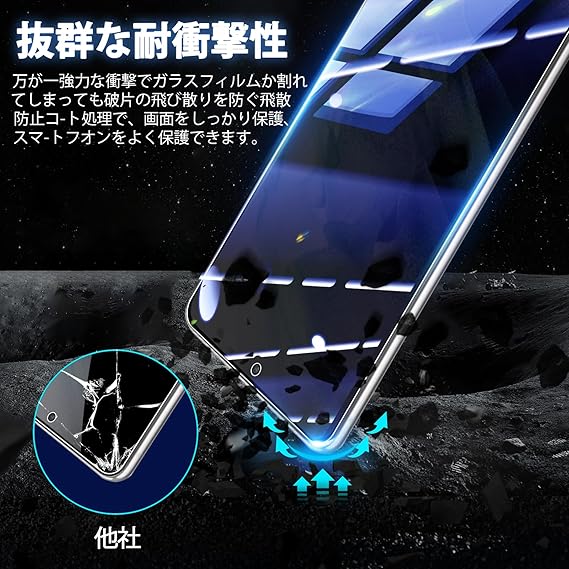【28°覗き見防止】覗き見防止技術により、真正面から見ると高透過率ではっきり見えますが、視野角度が左右約28°となり、28°を超えると画面が暗くなり、画面のプライバシーを守ります。【注意】※画面を使用したバーコード決済などは、画面を明るくしてご使用ください。