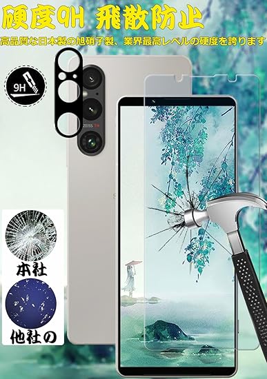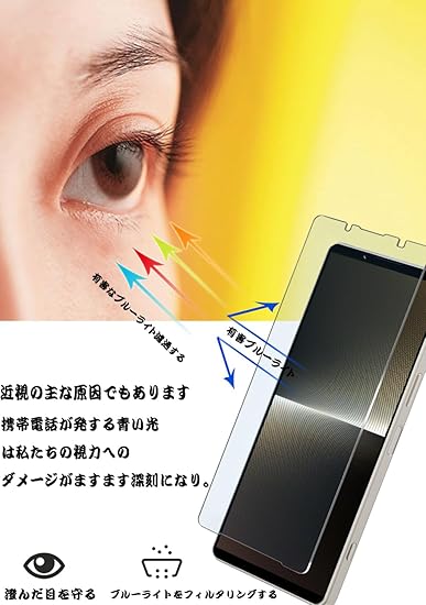 【ブルーライトカット 93%】【2+2枚入り】Xperia 1 V 用の(2枚入り)ガラスフィルム+(2枚入り)カメラフィルム SOG10/SO-51D 用の 目の疲れ軽減 液晶保護 フィルム 保護ガラス レンズ保護フィルム a