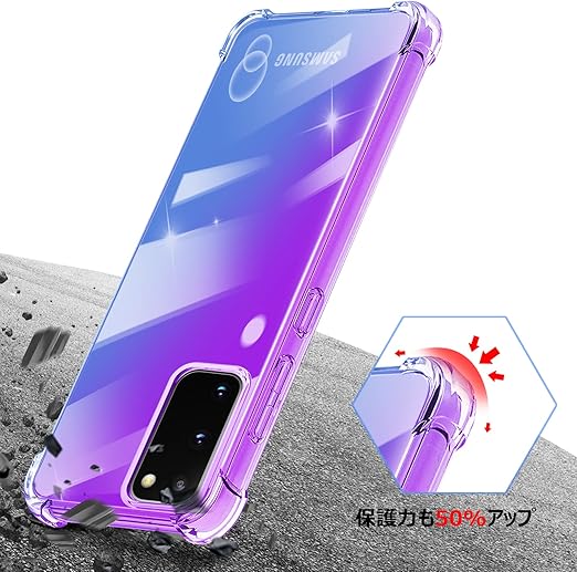 Samsung Galaxy S10 Plus 用ケース/Galaxy S10+ 用ケース グラデーション クリア 全面保護カバー SCV42 SC-04L SC-05L ケース 耐衝撃 衝撃吸収 tpu 耐震 ソフト軽量 薄型 落下防止 米軍MIL規格 透明 耐久 黄変防止 指紋防止 滑り防止 ワイヤレス充電に対応 人気 携帯カバー 紫+青 WY67-15 a