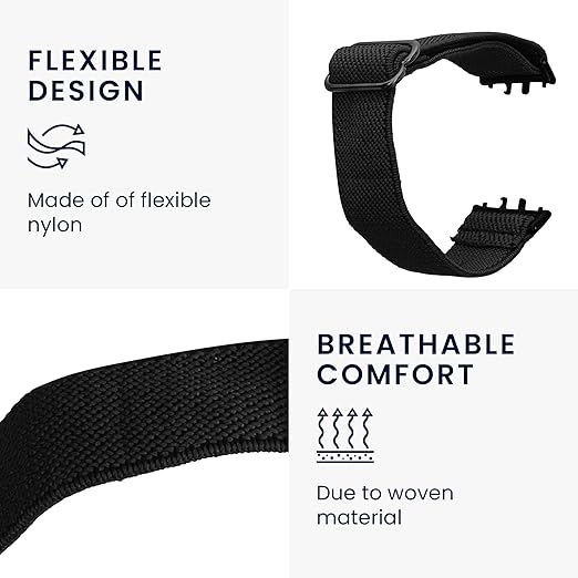 日常にもっとカラーを: 黒色の交換用バンドで、気分に応じてあなたのスマートウォッチのデザインが変えられます。軽量で耐久性のあるナイロン素材の交換ベルトなので、スマートバンドを日常的に使用する方でも安心です。