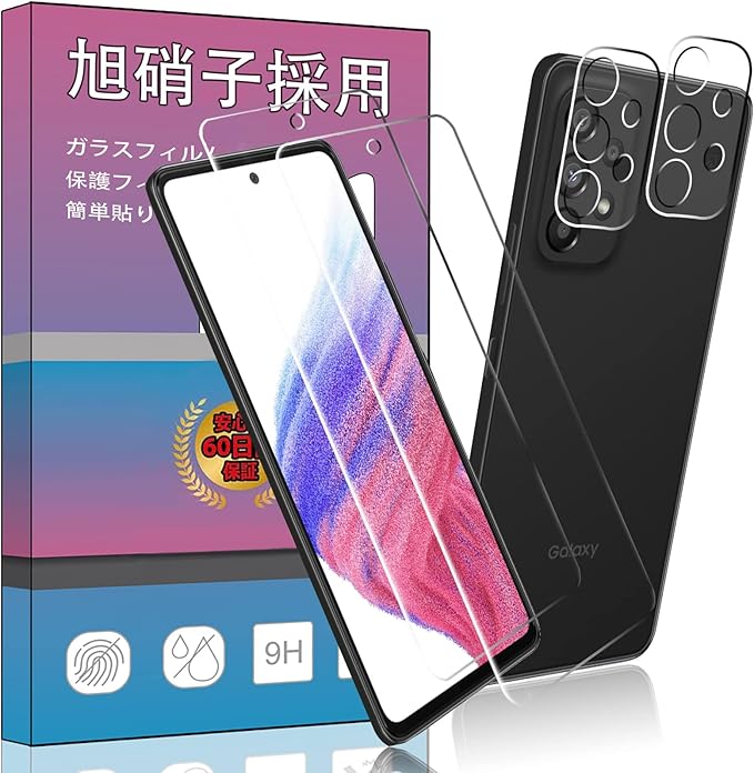 【対応機種】FOR ギャラクシーA53 Galaxy A53 5G SC-53C 用のフィルム 強化ガラス 液晶保護フィルム。注: 同じ機種です。メーカーが提供するカメラの穴の開口部は異なる開口部がある場合があります、ご理解ください。モデルによってサイズが異なりますので、モデルを確認してご購入ください。【包装の内容】高感度ガラス膜X 2、レンズ保護フィルムX 2、アルコール綿X 2、シールX 2