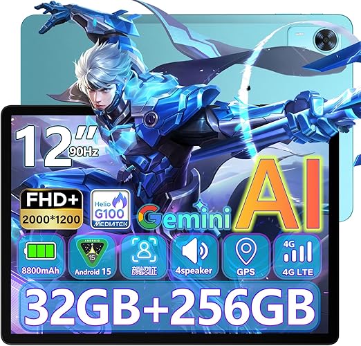 【Helio G100 タブレット 12インチ】DOOGEE E3+ Android 15 タブレット 2K FHD+ 大画面 32GB+256GB+2TB拡張 6軸ジャイロ 2.2Ghz G100 8コアCPU 8800mAh+Type-C充電+OTG、4G LTE+2.4G/5G Wifi+BT5.0、4つスピーカー GPS+顔認識 画面分割 無線投影 GMS/TELEC認証 日本語仕様書 a