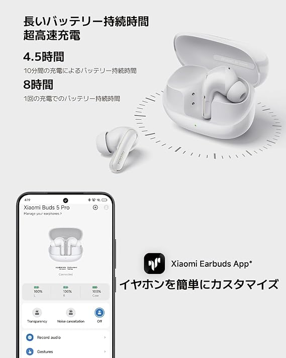 シャオミ(Xiaomi) ワイヤレスイヤホン Xiaomi Buds 5 Pro bluetooth5.4 55dBアクティブノイズキャンセリング 40時間再生 専用アプリ対応 録音機能搭載 チタングレー a